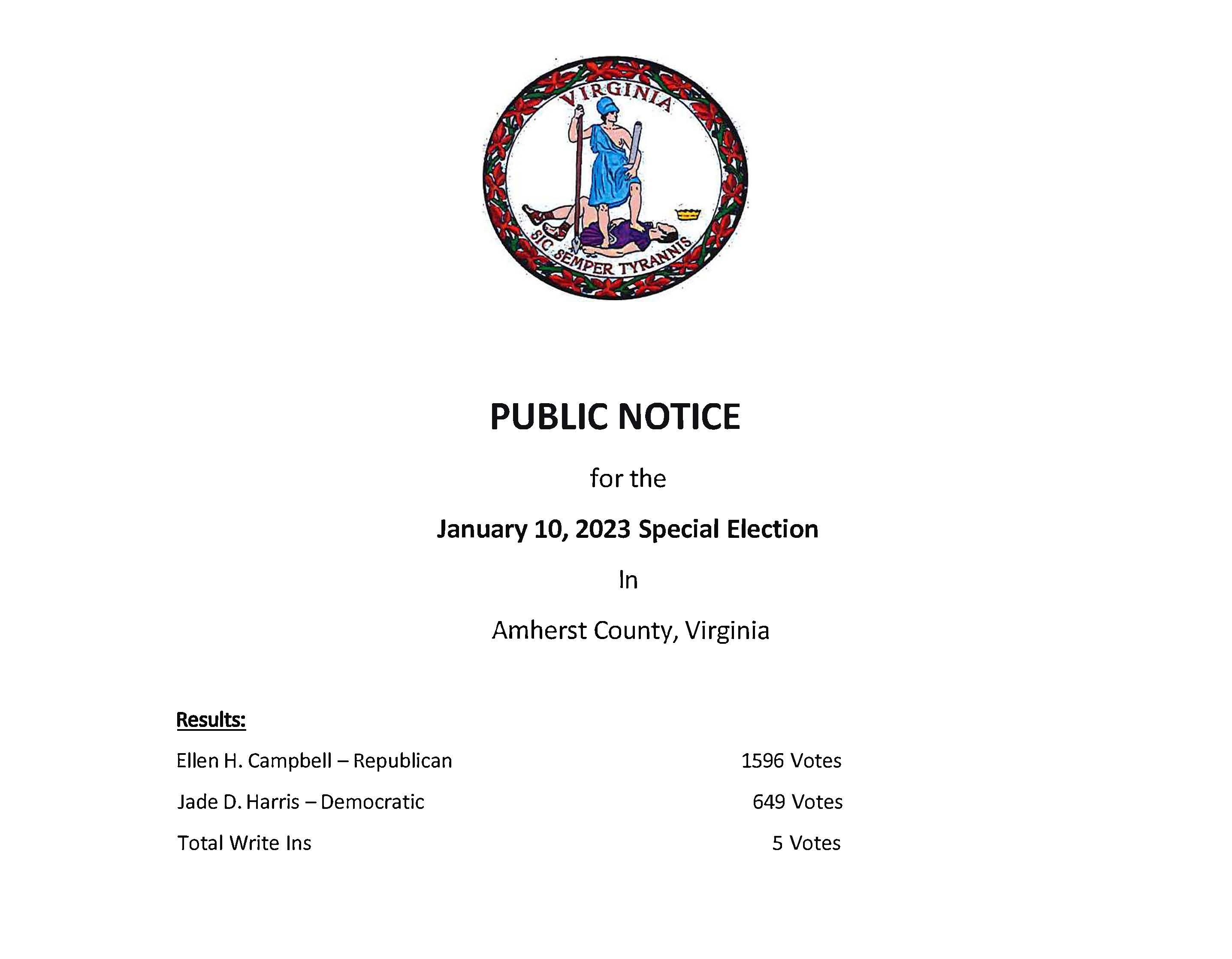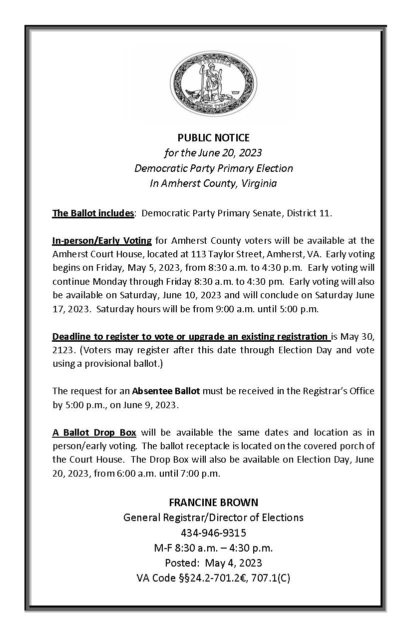 - PUBLIC NOTICE of IN-PERSON EARLY VOTING in AMHERST COUNTY, VIRGINIA